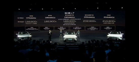 至境L7搭载“真龙”增程系统,采用252kW增程单电驱,1.5T混动专用发动机富邦速配,匹配峰值功率100kW的发电机,百公里综合能耗低至0.5L;满电百公里加速5.9秒,80-120km/h超车加速3.8秒;拥有302km纯电续航和1420km综合续航里程。支持130kW快充,30%~80%补能18分钟。