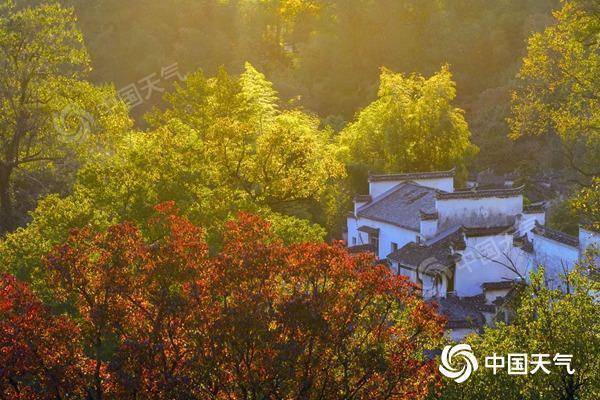 r南方红叶的最佳观赏期较北方晚一些,要等到11月才能陆续开启。安徽黄山塔川国家森林公园的红叶景观极具江南特色,每年秋季,乌桕和红枫树会为徽派民居的水墨画添彩。乌桕是我国特有的树种,树叶似心形,与黄栌叶片相比略有棱角,还带个小尖尖,十分灵动可爱。由于今年持续的高温天气,红叶变色速度较往年明显放缓,不过近期随着气温下降,秋色开始显现,11月上中旬前后这里的红叶也将进入最佳观赏期。