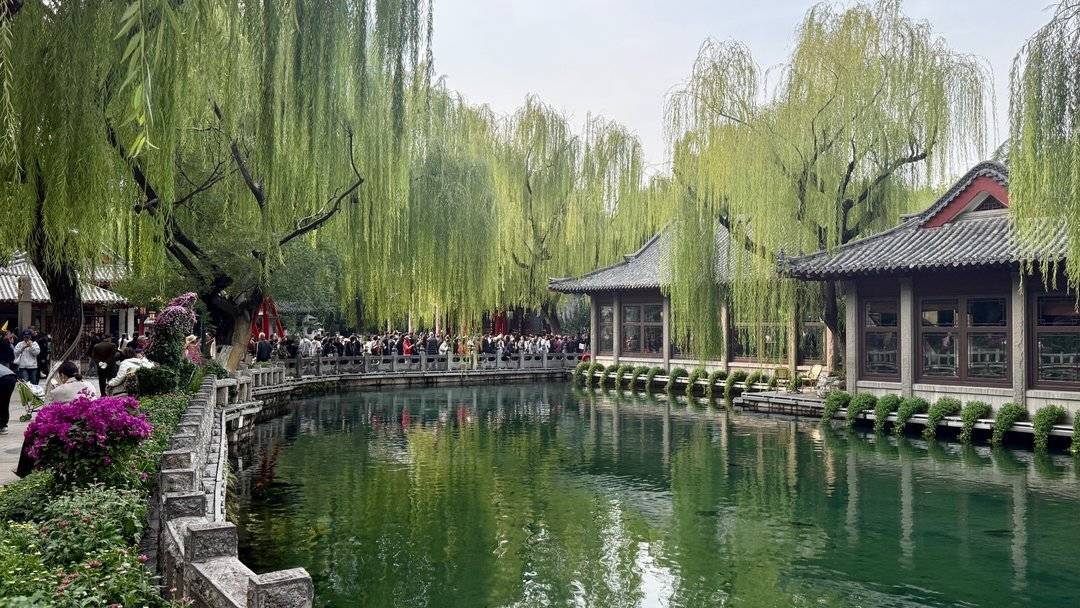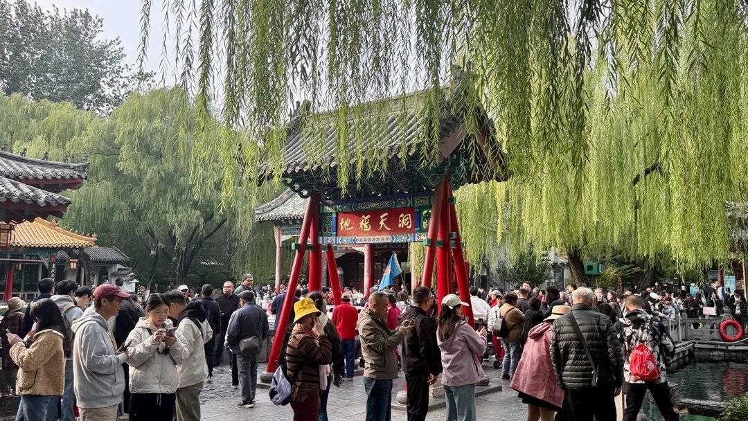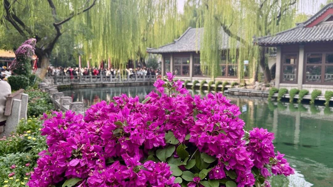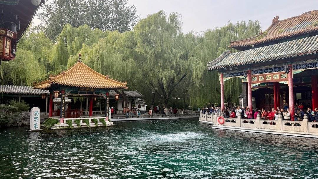 10月23日,霜降诚信双盈,山东济南趵突泉公园里草木渐渐泛黄,秋色掩映下的趵突泉公园呈现出另一番迷人风景。